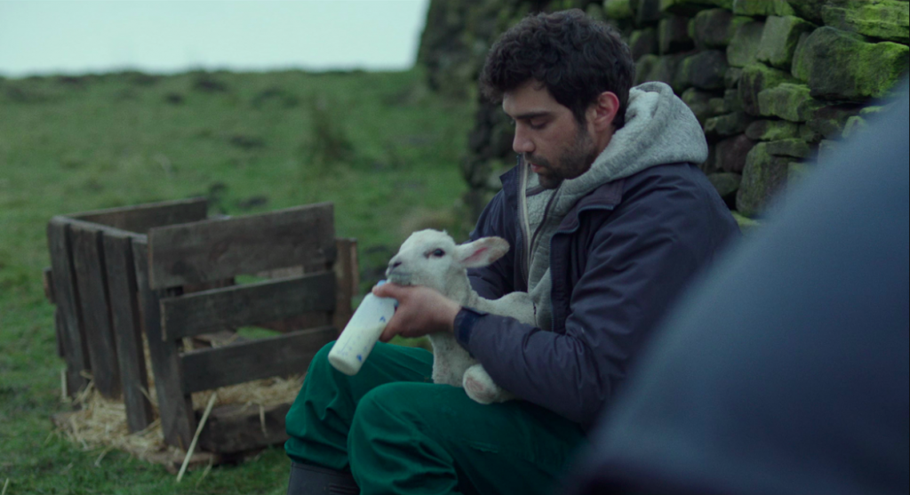 What makes this movie stand out from start to finish are three things: its cinematography, the long silences, and the body language of the characters. The use of Yorkshire’s natural landscape is brilliant. From the grey skies, to the windblown hills, the camera embraces the natural beauty of this secluded place. Additionally, the use of long silences is equally charming. Instead of relying solely in dialogue, the movie focuses more on the everyday actions of its characters, what they do with their life, and how they react to the people around them. Even though there is little music, we constantly hear the engine of vehicles, wood burning, sheep bleating and the characters’ breaths.